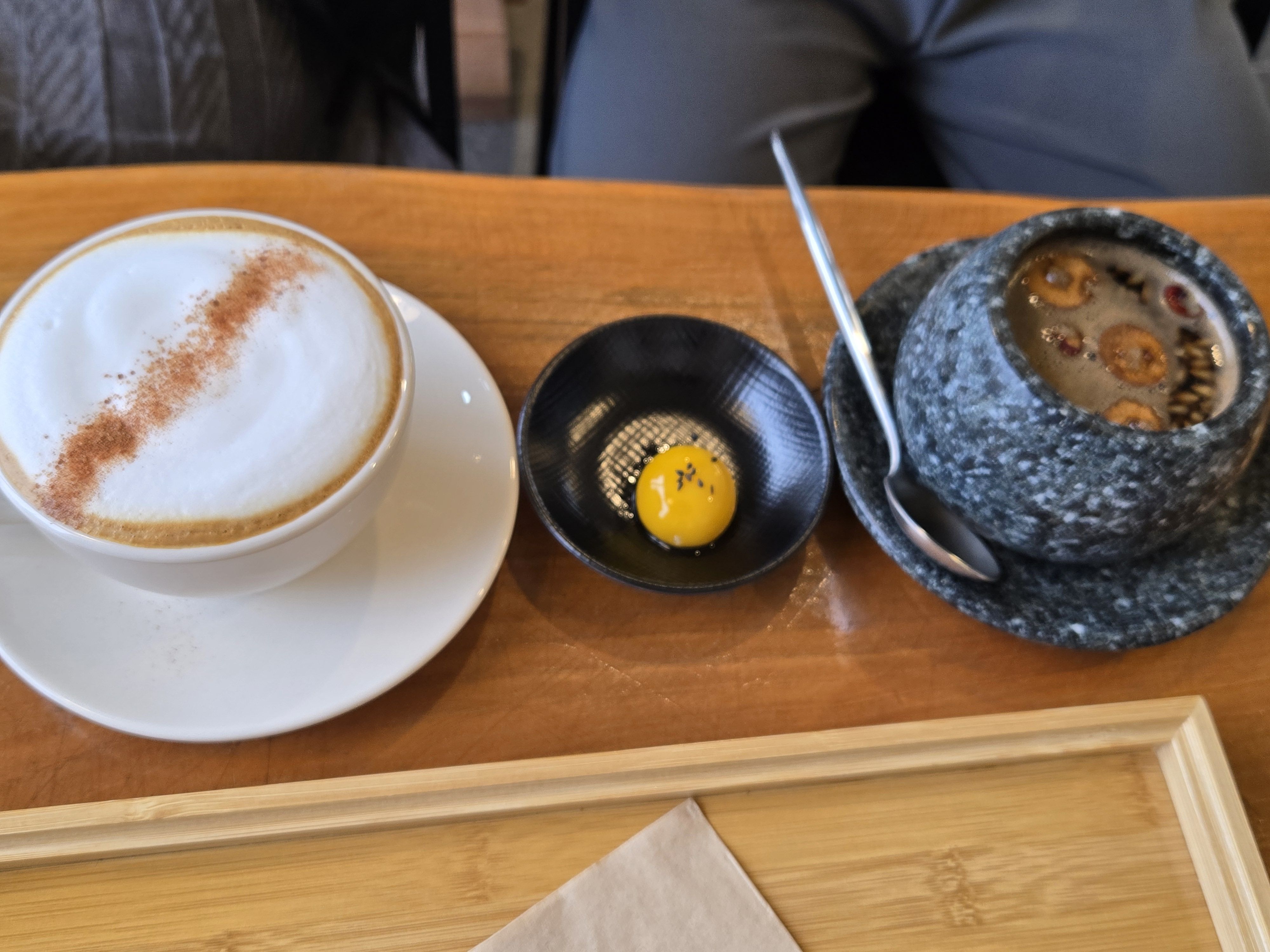 왜냐하면 계란 노른자가 퍼져 쌍화차와 섞이는 순간, 이도저도 아닌 맛이 될 수 있습니다.