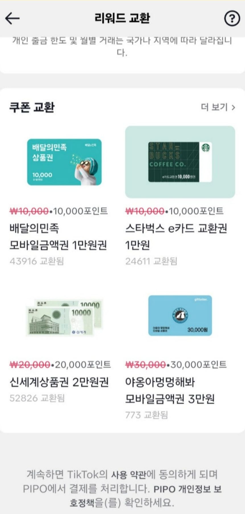3. 틱톡라이트 포인트리워드 교환방법